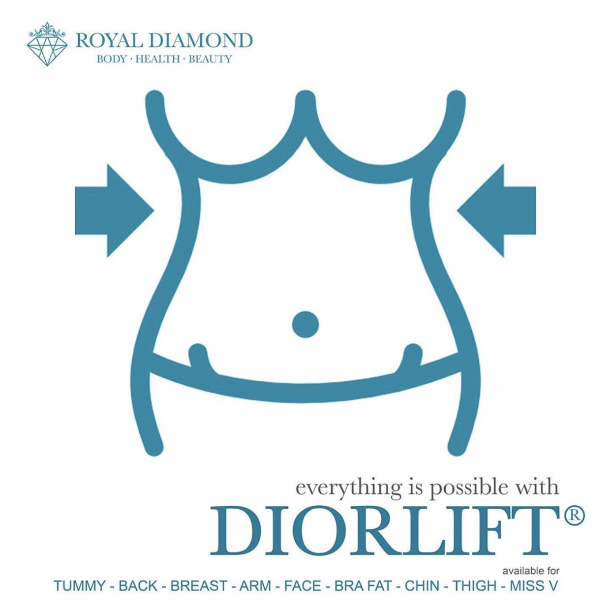 DIORLIFT treatment merupakan program pengurangan lemak dan pengencangan tubuh dan wajah tanpa operasi, dengan menggunakan alat berteknologi Ultrasound dan Radio Frequency yang berstandardisasi USA. DIORLIFT treatment membantu mengeluarkan lemak dari kantong lemak dan menghancurkan kantong lemak tersebut agar tidak dapat menyimpan lemak kembali. Lemak yang telah dihancurkan akan diserap tubuh dan dibuang secara alami.